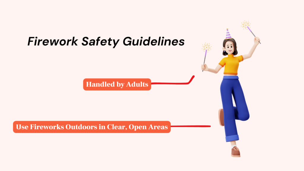 - Adhering to Firework Safety: Ensure they are handled by adults. Only use fireworks outdoors in clear, open areas, keeping a safe distance from people, houses, and flammable materials. Have water or a fire extinguisher nearby as a precaution.